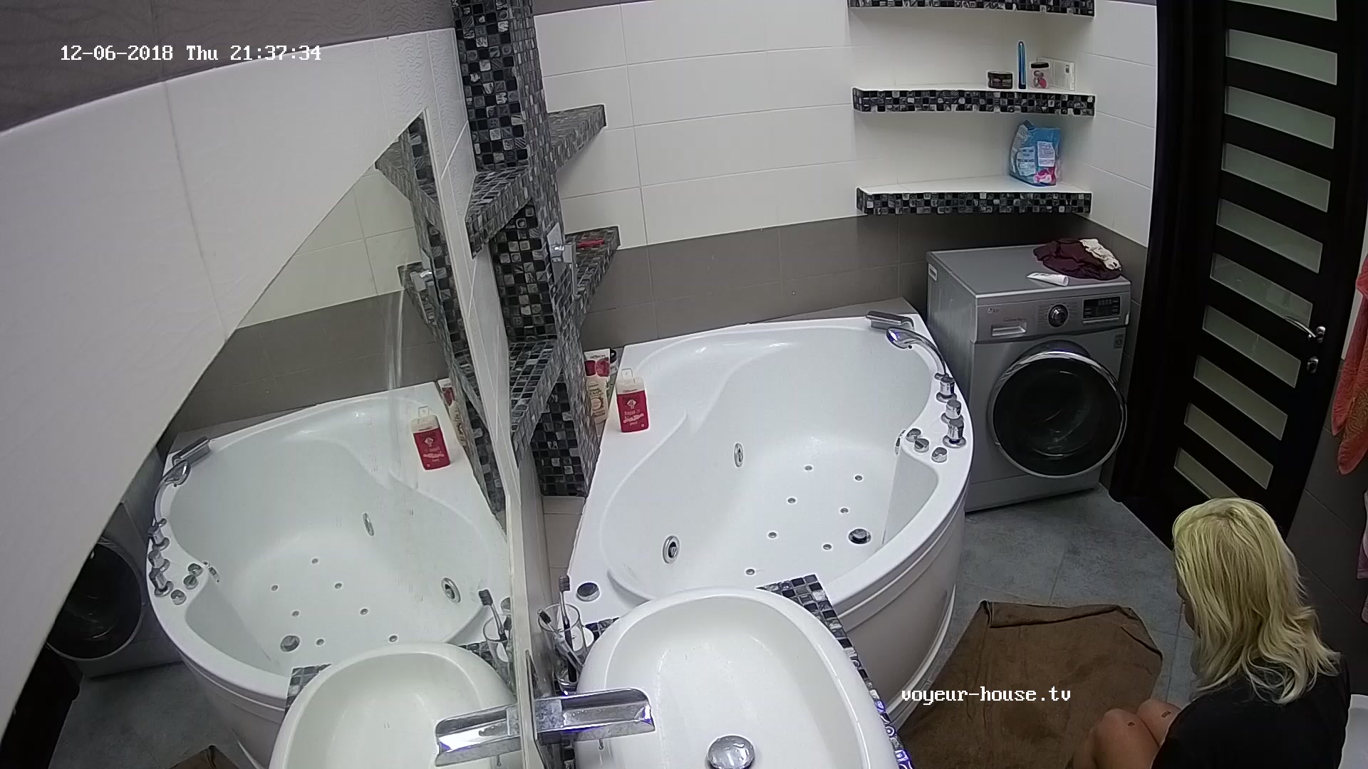 Blonde shaves legs in shower not knowing about cam